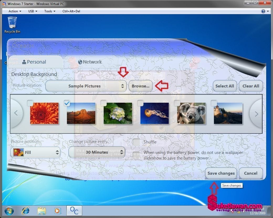 4. Browse ke gambar yang ingin Anda gunakan dan memeriksa (pilih) gambar, atau lebih dari satu gambar untuk memiliki desktop slideshow. Pilih posisi Picture untuk bagaimana Anda ingin gambar yang ditampilkan, dan pengaturan desktop slideshow jika Anda memilih lebih dari satu gambar. (lihat gambar di bawah)