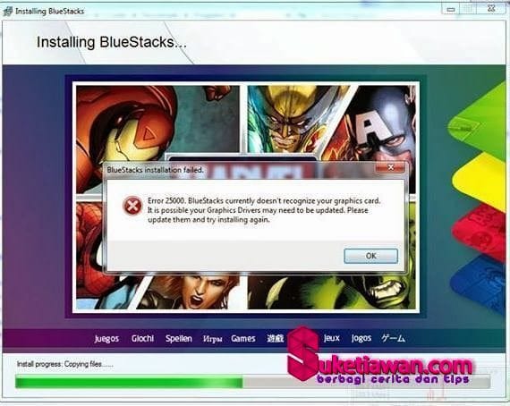 7. Jika mengalami seperti diatas, driver grafis agan harus diperbaharui untuk kompatibilitas dengan BlueStacks