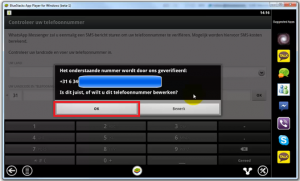 Tampilan konfirmasi apakah nomer yang masukan adalah benar? bila benar tekan OK lalu tunggu sebuah sms code (angka 3 digit) dari server ke nomer mobile.